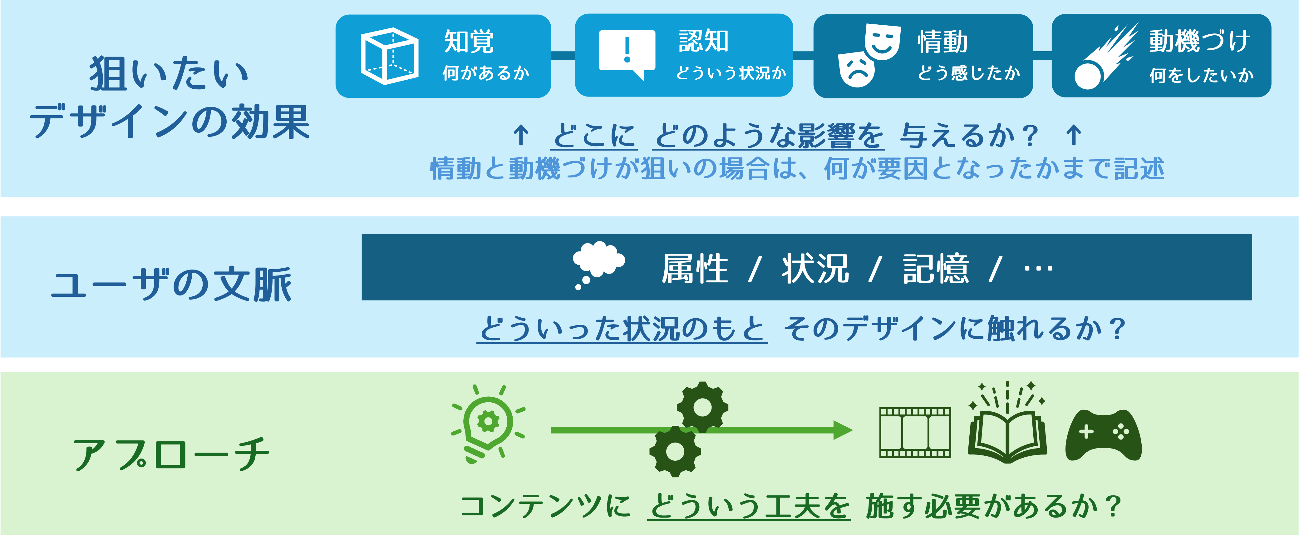 EDAは「心をどう動かしたいか」「アプローチ」の二つの側面から デザインを特徴づけることで、有益なデザインを整理するフレームワークであった。